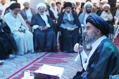 المرجع المُدرّسي في لقائه مع علماء الدين وطلبة الحوزة العلمية في كربلاء المقدسة: الكلمة الطيبة للعلماء والحوزة العلمية هي التي تخلق (ربيع) التغيير في العراق(جديد) الهدى / كربلاء المقدسة