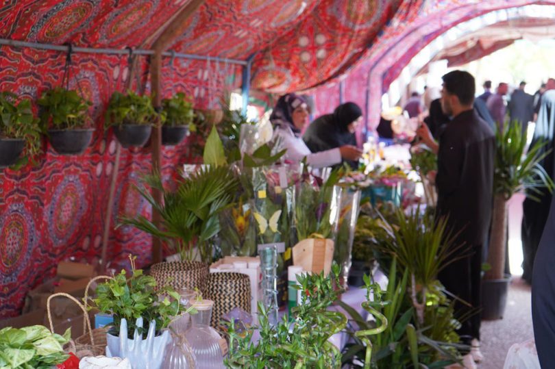 واستعرض المشاركون في المهرجان انواع مختلفة من النباتات التي يمكن زراعتها في البيئة العراقية بالإضافة للمعدات والاسمدة والآليات الزراعية.