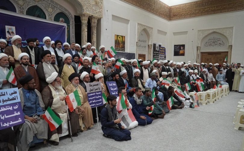 وصرح مدير مؤسسة التبليغ الإسلامي، الشيخ صلاح الكعبي، قائلاً: “نحن جمع من أساتذة وطلبة العلوم الدينية في حوزة النجف الأشرف، نقف اليوم بقلوب يملؤها الغضب وصدور تغلي من الألم، وإيمان لا تلينه النيران، لنعلن بملء الصوت وصدق الموقف رفضنا واستنكارنا للاعتداءات الصهيونية على غزة ولبنان واليمن، وعلى الجمهورية الإسلامية الإيرانية، رمز العزة والممانعة.”