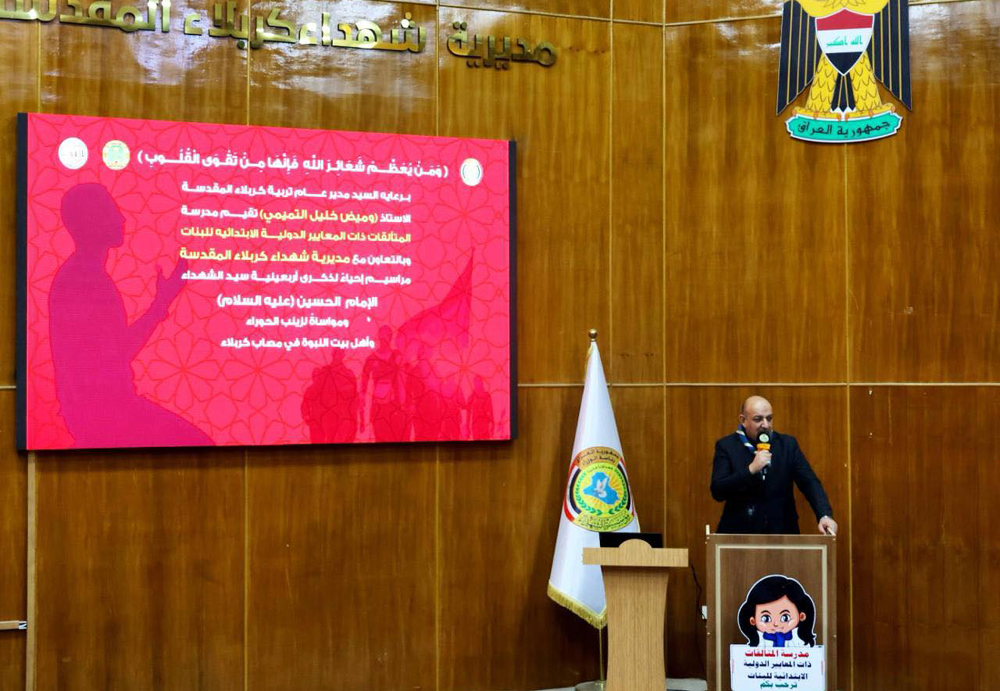 أحيت مدرسة المتألقات ذات المعايير الدولية الابتدائية للبنات، اليوم الأربعاء، ذكرى أربعينية الإمام الحسين (عليه السلام) بحفل تأبيني كبير، وذلك برعاية وحضور المدير العام لتربية محافظة كربلاء، الأستاذ وميض خليل التميمي، وبالتعاون مع مديرية شهداء كربلاء.