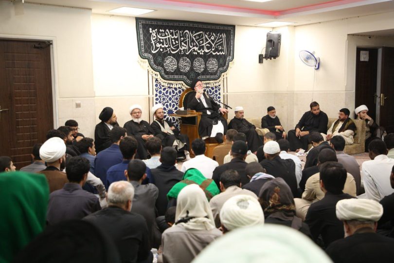 وحضر المجلس ثلة من العلماء والفضلاء وأساتذة الحوزة العلمية، حيث ارتقى المنبر سماحة السيد عدنان جلوخان، وألقى كلمة مؤثرة في هذه الذكرى الحزينة.