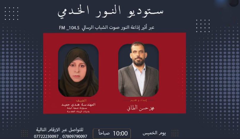 استضاف برنامج “استوديو النور الخدمي”، الذي يُبث عبر أثير إذاعة النور، في الساعة العاشرة من صباح كل يوم خميس، وهو من إعداد وتقديم الإعلامي محمد الطائي، المهندسة هدى حميد، مسؤولة شعبة البيئة في بلديات كربلاء، للحديث عن مشروع المطور العقاري الذي يهدف إلى توفير حلول سكنية متكاملة للمواطنين.