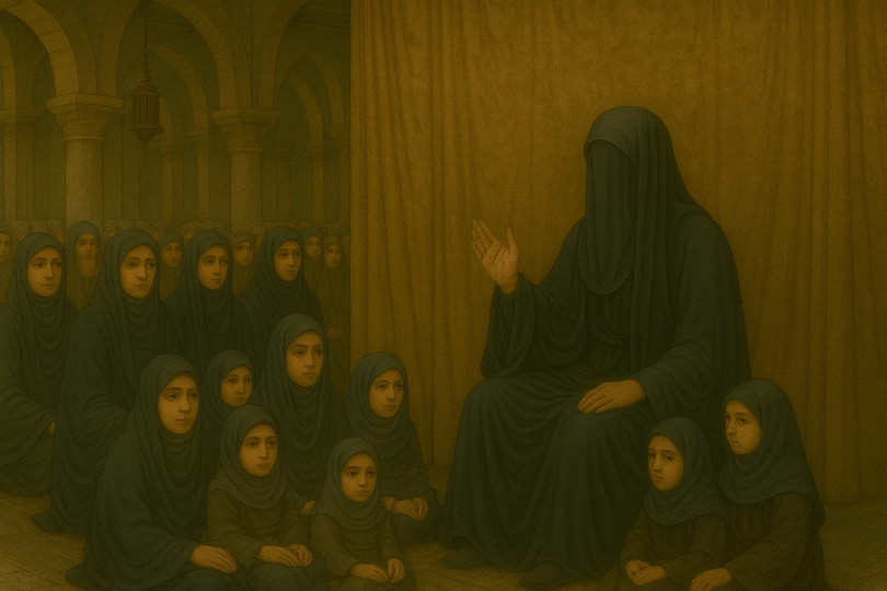 إن هذا المشهد يبرز نوعاً آخر من الشجاعة؛ شجاعة التمسك بالمبدأ، فهي، عليها السلام، لم تذُب في الظرف الراهن، ولم تتنازل عن ضوابطها الشرعية بحجة “الضرورة السياسية”. لقد أثبتت أن المرأة قادرة على أن تزلزل عروش الظالمين بصوتها وحجتها، وهي في قمة سترها وحيائها، جاعلة من “الملاءة” (الستار) منصةً إعلامية تدوي منها كلمة الحق، كما أن أنينها الذي أجهش له القوم بالبكاء كان سلاحاً عاطفياً وظفته بذكاء لتهيئة النفوس لاستقبال الحقيقة، مما يدل على رباطة جأش وقدرة على إدارة الموقف الجماهيري.