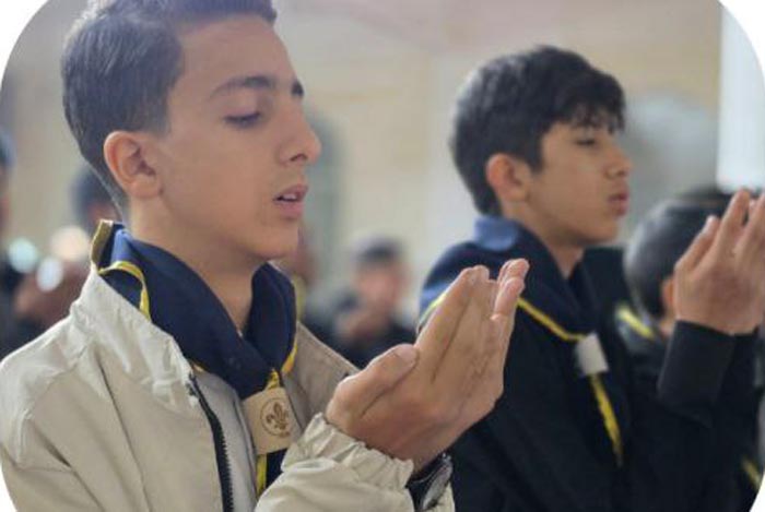 وفي فقرة روحية متميزة، شارك الفتية بقراءة دعاء السمات في جوٍّ مفعم بالخشوع والتدبر. وقد ساهمت الكلمات المباركة في ترسيخ معاني التوسل والتعلّق بالله تعالى في القلوب، مؤكدة على البعد العبادي والروحي للنشاط الكشفي.